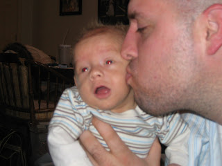 Because they've been occuring for the past 3 hours, and it's only 6 am. I might just jump out a window. So, instead, I've decided to remind myself why I love him by posting these cute pictures. He just got his shots on Friday, and he was a ROCK STAR!!! He let out a yell when my mom, the shot giver lady stuck the 40 ft. needle into his skinny little legs, and then when she was done, he calmed down immediately. Yay for him!!