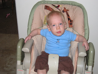 Jason and I LOVE Ritz crackers. We go through them pretty quickly, and they are hands-down one of our favorite snacks. Last week, I was eating lunch (Cottage Cheese, Peaches, and some Crackers), and Hazen was sitting on my lap. He would watch me take the cracker out of the package, hold it, open his mouth, and then watch sadly as I popped it into my mouth. Once I finally caught on, I would take a bite, then he would open his mouth, and he would take a bite. It's really too cute. I think he really likes the way the cracker feels as his two little teeth bite into it. So, now, when I have some chores to do, I just pop him in his high chair, and let him enjoy a snack of crackers with me!